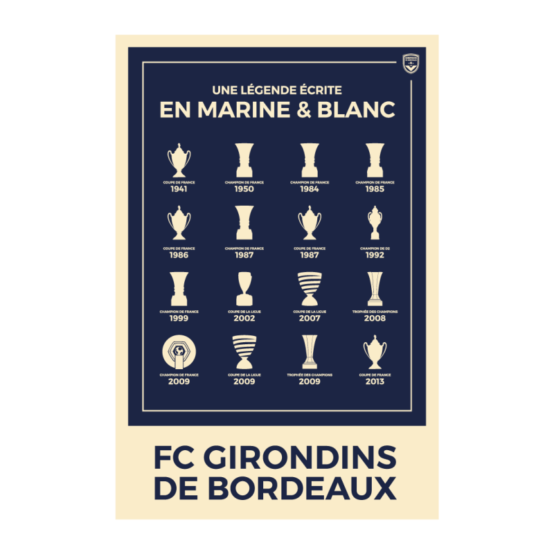 A Poster which retraces the track record and historic triumphs of our legendary club FC Girondins de Bordeaux