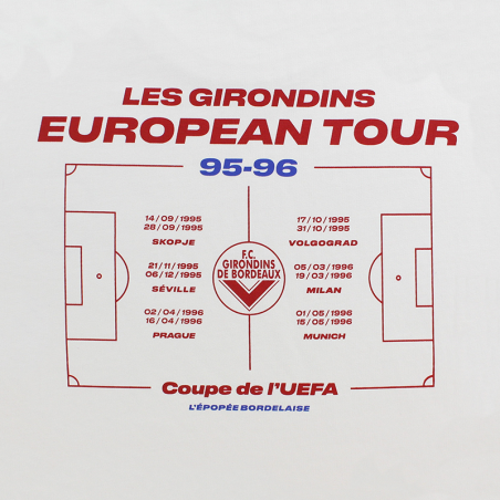 Replongez vous dans l'épopée européenne des Girondins de Bordeaux de la saison 1995/96. C'est un t-shirt au design original et avec une coupe oversize.
